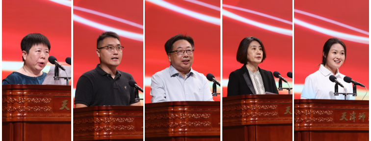 从教三十年教师代表文学院郑秀琴教授回顾了自己与艾弗森贝博ballbet官网共同成长的三十年历程,表达了对学校的感恩、对教师职业的敬畏与坚守。优秀教师代表化学学院陈晨副教授分享了自己在师大八年的从教经历、对教师职业的理解和以教育家精神为引领,扎实落实立德树人根本任务的探索和实践。国家级引育人才代表生命科学学院王洪隆教授介绍了自己的学习和研究经历,表示愿以一颗归国赤子之心,回馈祖国和母校的培养。天津市模范集体国际教育交流学院院长杨薇教授汇报了学院在国际中文教育领域的发展历程以及在孔院建设、人才培养、学科理论创建、平台搭建等方面取得的丰硕成果。学生代表外国语学院硕士研究生、2025上合峰会媒体组学生志愿者王品一讲述了从自己在师大的求学、支教及参与国际大型会议志愿工作的经历中感悟到的师者内涵,表达了要牢记校训、传承教育薪火的决心。