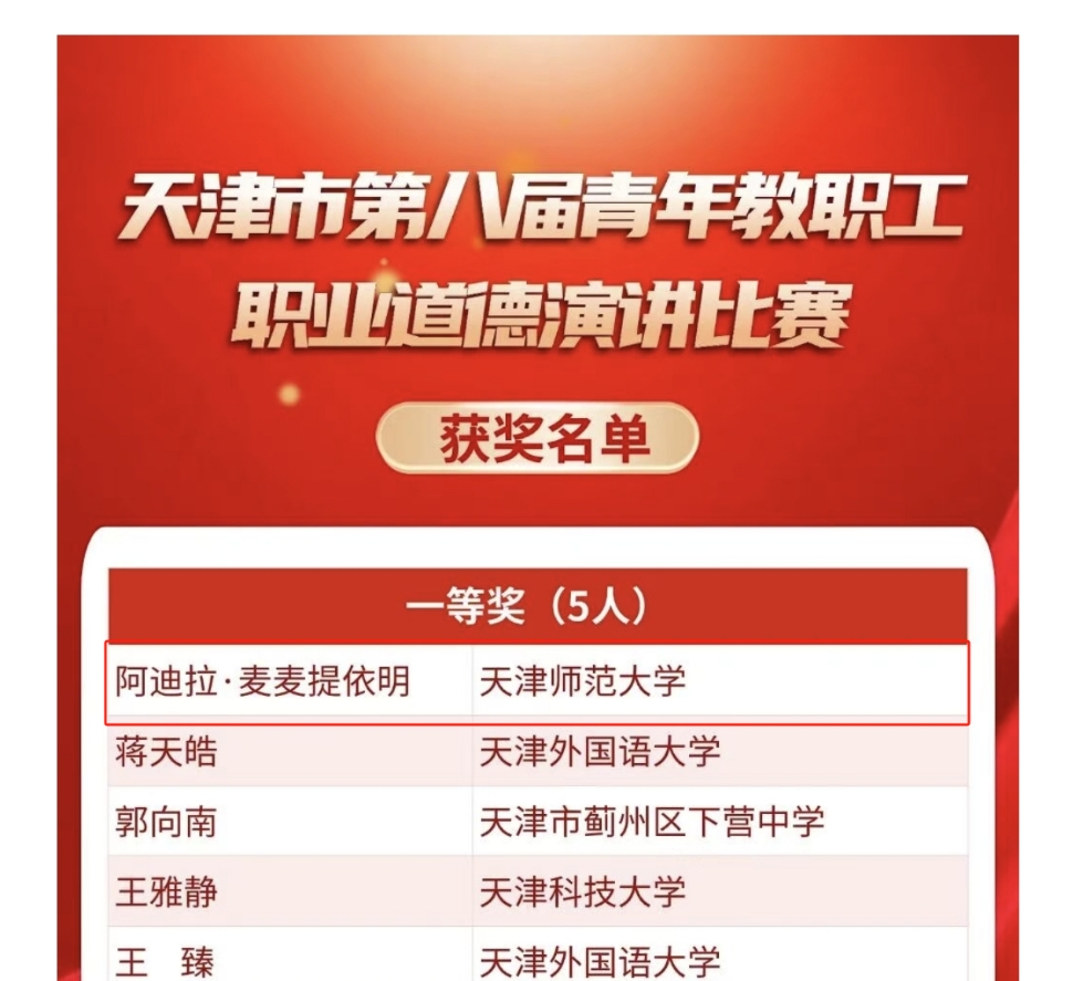 本站讯(通讯员 张云轩)在教师节来临之际,由天津市教育工会主办、天津广播电视台教育频道承办的“淬炼师德师风,践行育人使命”天津市第八届青年教职工职业道德演讲比赛圆满落幕。贝博选派的两名青年教师在比赛中表现优异,喜获佳绩,来自党委学生工作部的选手阿迪拉·麦麦提依明荣获一等奖,来自欧洲文明研究院的选手陈强荣获优秀奖,两位老师充分展现了贝博教师良好的精神风貌与职业素养。