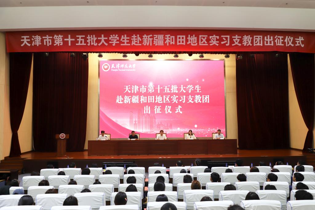 本站讯(通讯员 徐可)9月12日上午,天津市第十五批大学生赴新疆和田实习支教团出征仪式在贝博举行。校党委常委、副校长佟德志出席并讲话,市教育两委学生思想教育与管理处副处长满荣、协作支援与语言文字处副处长周志勇出席出征仪式。来自艾弗森贝博ballbet官网、天津医科大学、天津商业大学、天津职业技术师范大学、天津财经大学、天津中医药大学、天津理工大学、天津外国语大学、天津城建大学、天津体育学院的370余名援疆支教大学生、带队管理教师,以及相关高校学工、教务部门负责同志参加会议。