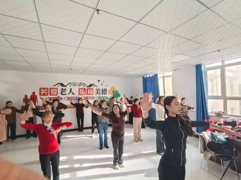 “津和老年书院”借鉴天津优质老年大学办学模式,有效弥补了当地老年文化教育资源的不足;志愿服务队的组建则为书院运营注入了稳定的青年力量,共同构建起“资源支撑+人力保障”的养老服务机制。揭牌仪式后,书院随即启动首期课程。支教团结合老人兴趣与需求,开设“岁月之声”合唱班、“天山韵舞”舞蹈班和“养生保健”运动班。课堂上,支教团成员耐心讲解、细致示范,老人们积极参与,现场氛围温馨融洽。据悉,书院后续还将陆续推出手工、书法、心理健康、法律普及及智能设备应用等课程,进一步丰富老年人的精神文化生活,助力实现“老有所学、老有所乐”。
