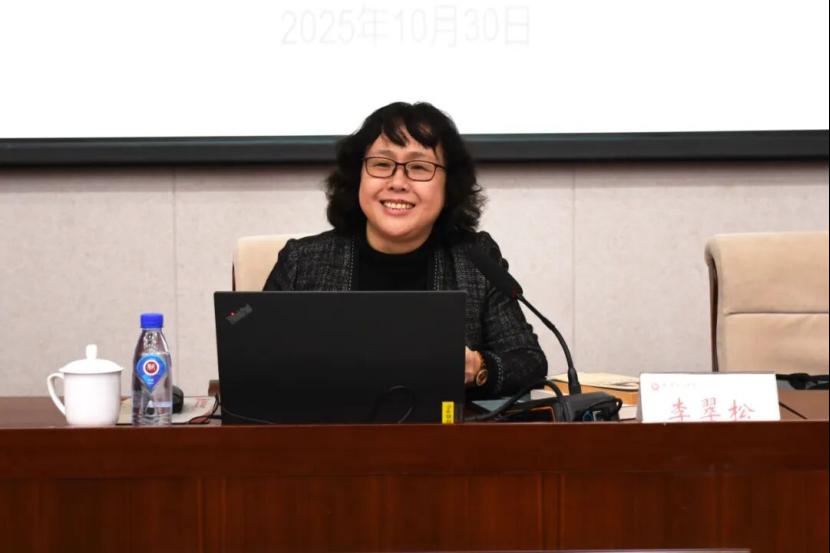 李翠松结合教育家精神的六大方面,生动解读了其与科学家精神、工匠精神的融通关系。她强调,教育家精神并非抽象理念,而是体现在日常教育教学的生动实践中。报告中,她援引天津一中老校长韦力等教育家的感人事迹,结合一线教学、课程开发、青年教师培养等丰富案例,强调教师应在言传身教中示范、在教学一线中扎根、在个人成长中融入国家使命,真正做到为党育人、为国育才。