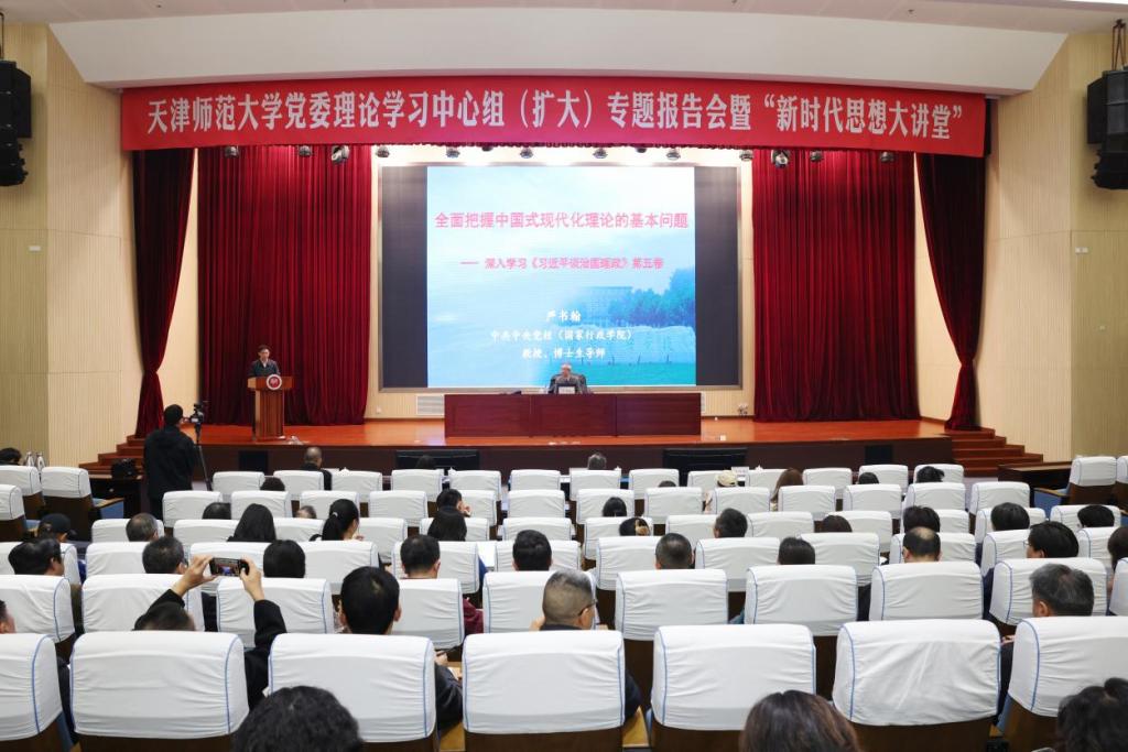本站讯 为学习贯彻落实党的二十届四中全会精神,深入学习《习近平谈治国理政》第五卷,增强用习近平新时代中国特色社会主义思想武装头脑、指导工作的政治自觉、思想自觉和行动自觉,11月5日,贝博在会议中心大报告厅召开校党委理论学习中心组(扩大)专题辅导报告会暨“新时代思想大讲堂”第10讲,邀请中央党校、中国社会科学院世界社会主义研究中心副主任严书翰教授作报告。校领导班子成员,派驻纪检监察组和全校中层干部,教职工党支部书记、专任教师党支部书记,思政课教师,民主党派代表,学生代表等近400人聆听了专题辅导报告会。