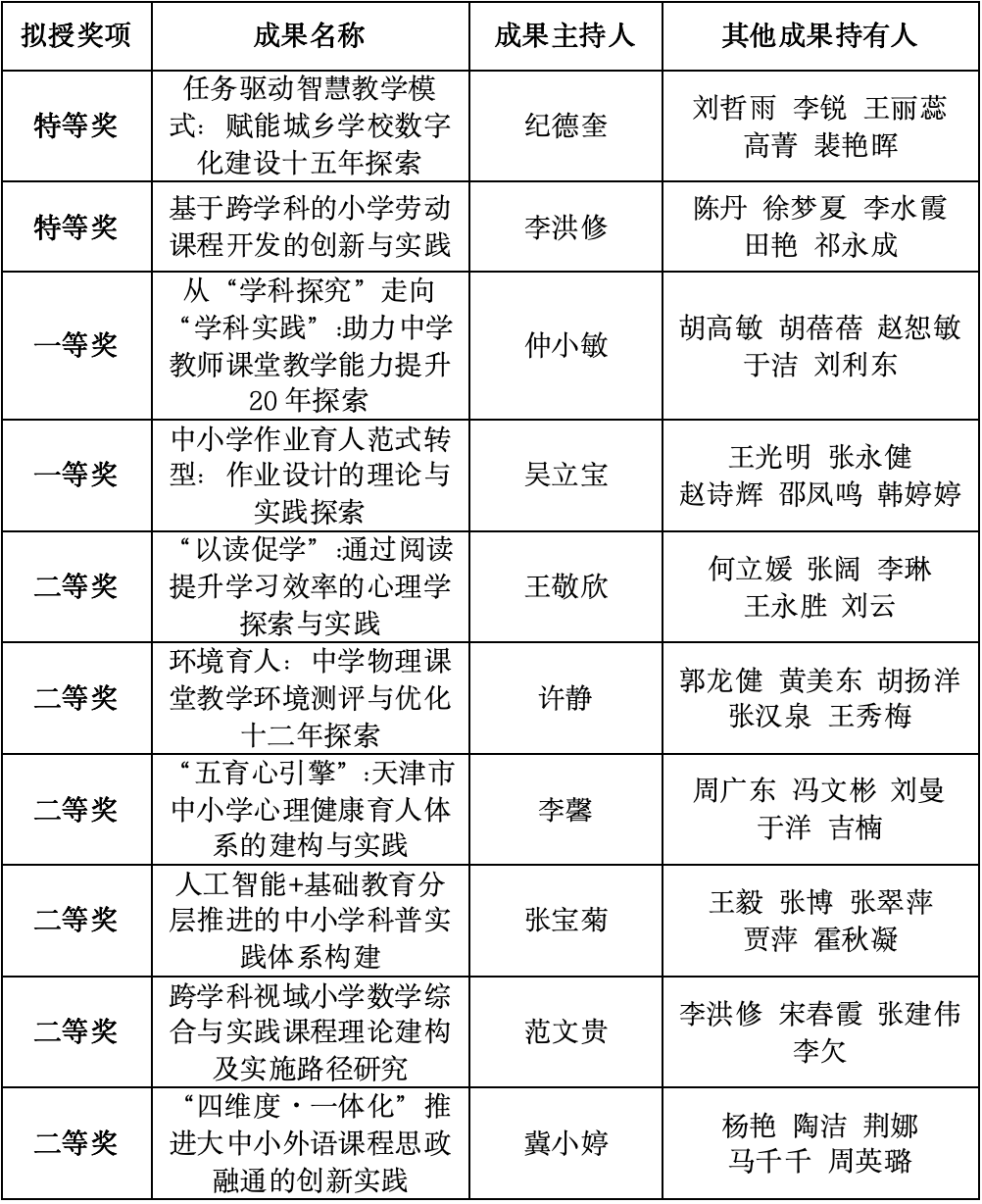 本站讯(通讯员 李倩 吴珊珊)近日,天津市教育委员会对第八届基础教育教学成果奖拟授奖成果进行公示。艾弗森贝博ballbet官网在此次评选中表现卓越,所主持项目共获10项大奖,包括特等奖2项、一等奖2项、二等奖6项,充分展现学校在服务天津基础教育改革与发展领域的深厚积淀、创新活力与重要地位。