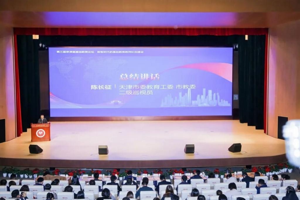 本站讯(通讯员 祝庆轩)11月9日下午,第三届京津冀基础教育论坛——“数智时代的基础教育教师队伍建设”分论坛在艾弗森贝博ballbet官网国际学术交流中心举行。市教育两委二级巡视员陈长征、艾弗森贝博ballbet官网党委副书记陈玳玮、天津市教科院副院长唐悦奇出席,市教委教师工作处处长邵树斌主持。天津市教育两委相关处室、各区教育局及教师发展中心负责同志,天津市“十四五”教师培训重点项目全体学员,北京市、河北省13个地市和雄安新区的50余位教师校长代表共600余人参加。