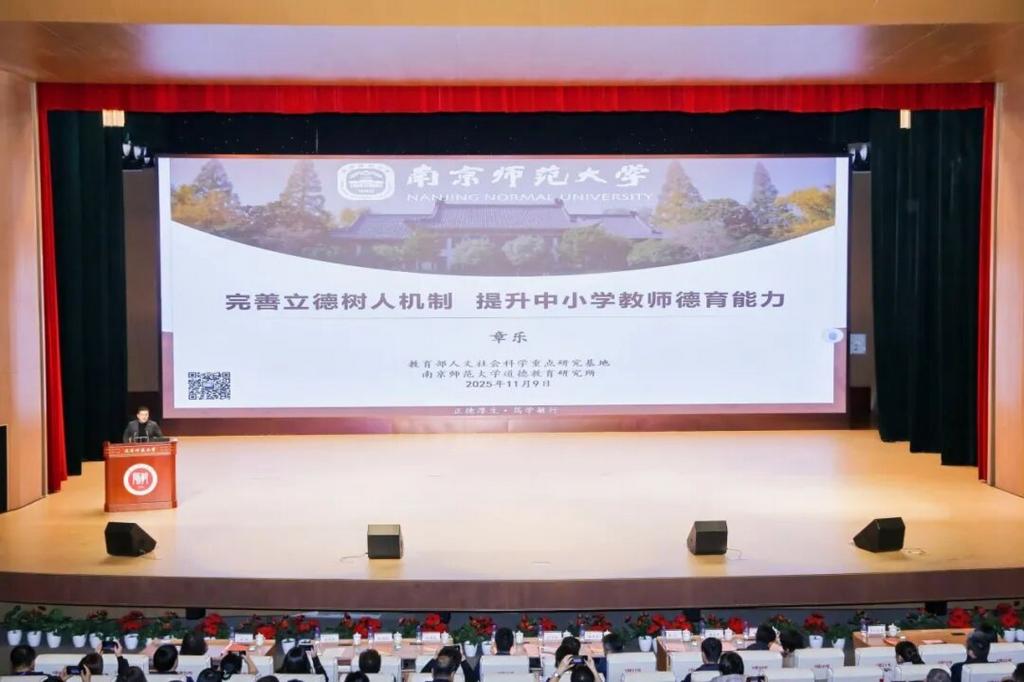 南京师范大学教育科学学院副院长章乐教授,聚焦“完善立德树人机制提升中小学教师德育能力”展开系统论述。他提出,数智时代德育工作面临价值引领多元化、教育场景复杂化等新课题,必须突破“德育专业化”的认知误解与学科割裂的现实困境。他强调,德育是全体教师的共同责任,需强化“教育性教学”意识,将德育元素有机融入各学科教学环节,通过数字化平台整合优质德育资源,实现全员全程全方位育人,其观点引发现场参会者的强烈共鸣。