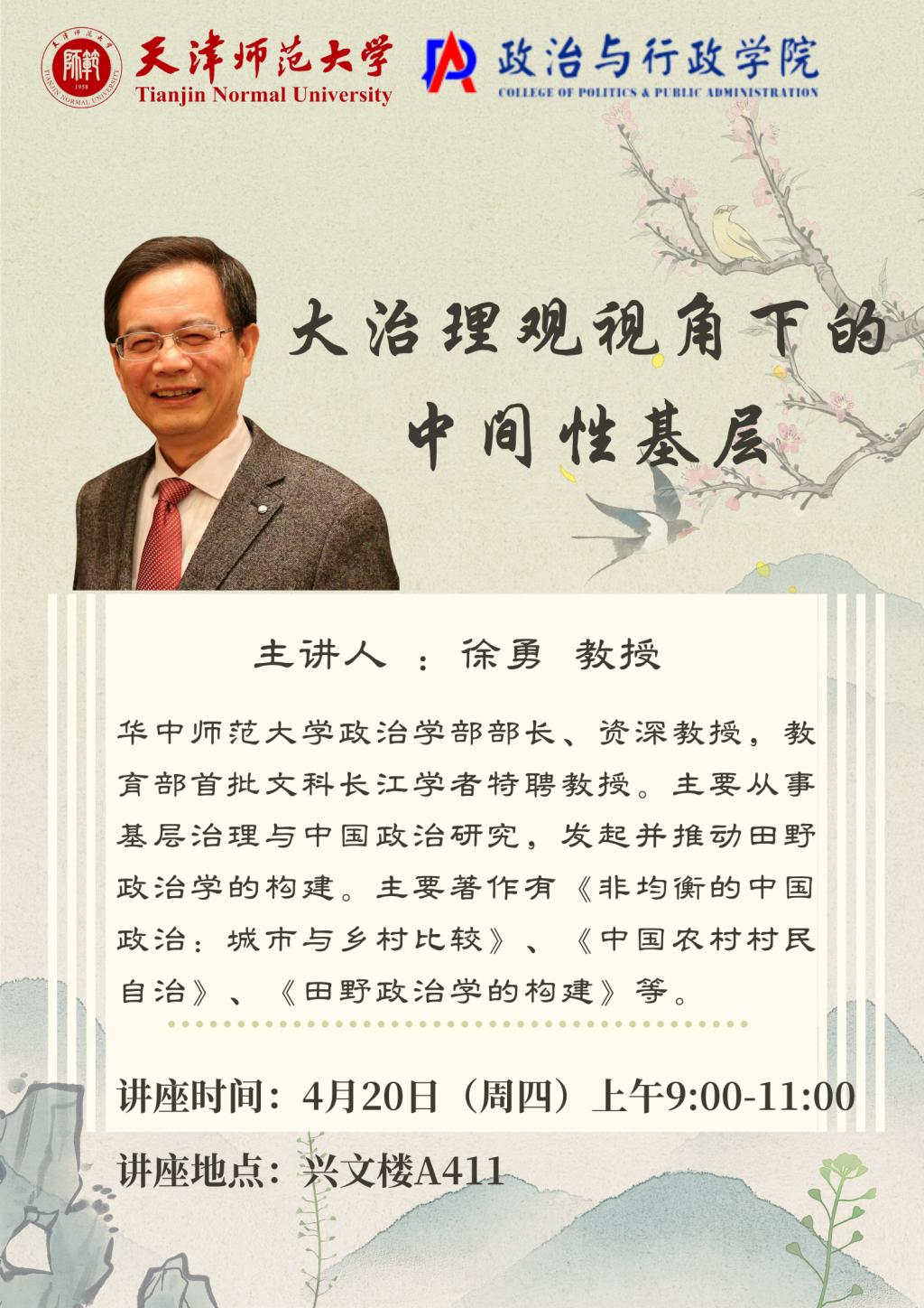 演讲人:徐 勇,华中师范大学政治学部部长、资深教授,教育部首批文科长江学者特聘教授。主要从事基层治理与中国政治研究,发起并推动田野政治学的构建。主要著作有《非均衡的中国政治:城市与乡村比较》、《中国农村村民自治》、《国家化、农民性与乡村整合》、《田野政治学的构建》、《关系中的国家》多卷本等。