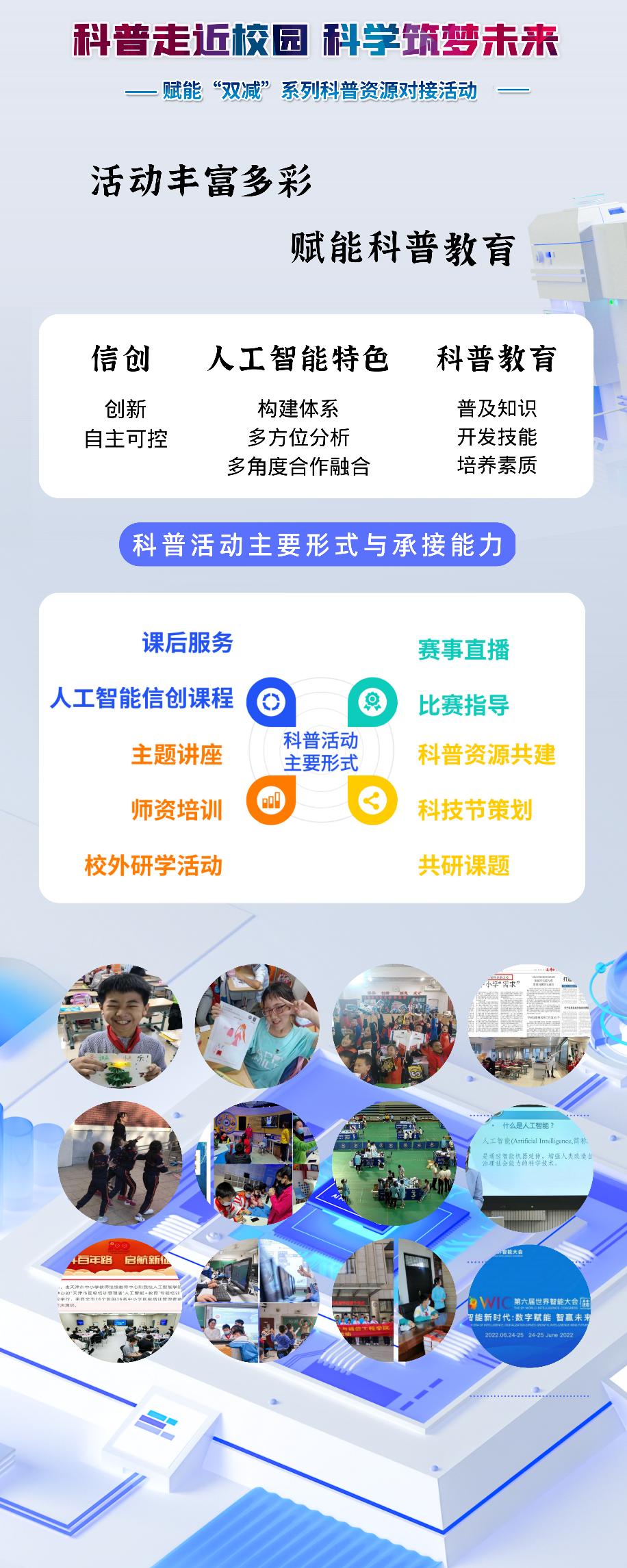 近年来,基地常态化开展“双减”课后服务与校内外研学活动,年均服务中小学生2,000余人、课时1,000余小时;积极参加世界智能大会与全国科普日等重大展会,单次展览接待逾万参观人次,云端活动单场在线观看破万,荣获中国科协颁发的全国科普日优秀活动三次、优秀组织单位一次,获国家、省市级科普作品比赛奖项70多项。基地成果突出,既培养了教学与科普人才,也推动了信创技术在基础教育的示范应用,为区域科技普及、教育数字化转型与产学研融合提供了可复制的实践样本。