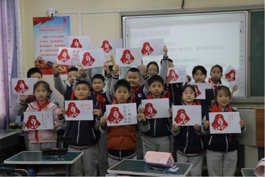 为了让雷锋精神更加深入人心,活动特别设置了“指尖上的雷锋精神”剪纸环节。宣讲团成员带领小学生们一起创作剪纸作品,将雷锋语录融入其中。一幅幅栩栩如生的“雷锋肖像”和“螺丝钉”剪纸跃然纸上,巧妙地将传统技艺与红色文化相结合。活动现场还设置了“雷锋语录墙”,小学生们用稚嫩的笔迹誊写着“人的生命是有限的,但为人民服务是无限的”等经典语句。二年一班的学生在展示作品时表示:“剪纸让我更深刻地理解了雷锋叔叔的‘螺丝钉精神’,每一刀都要认真对待!”活动负责人指出,这种“手脑并用”的实践模式,有助于青少年将抽象的精神转化为具象的认知,让雷锋精神以艺术的形式在他们心中扎根。