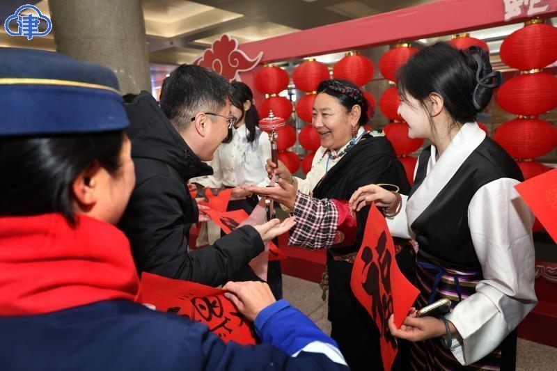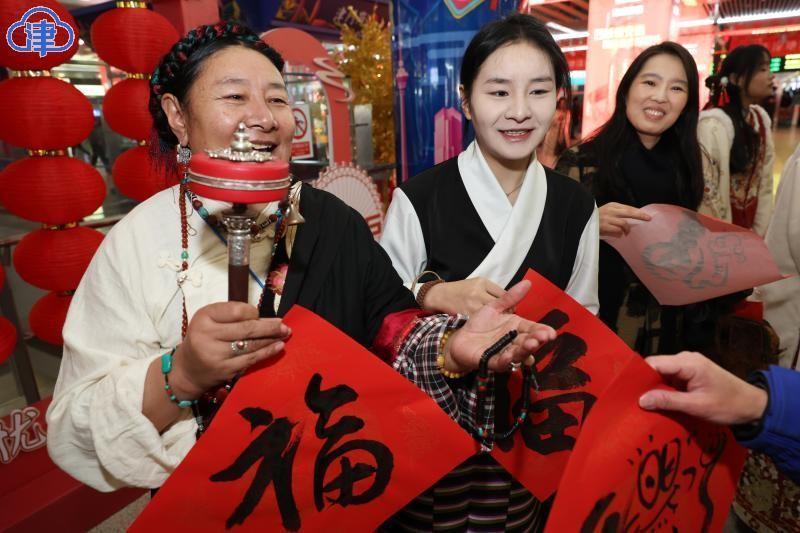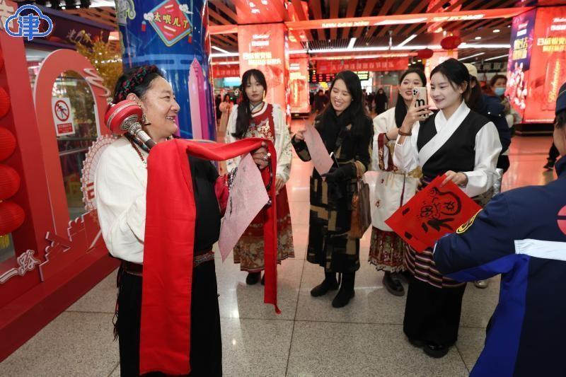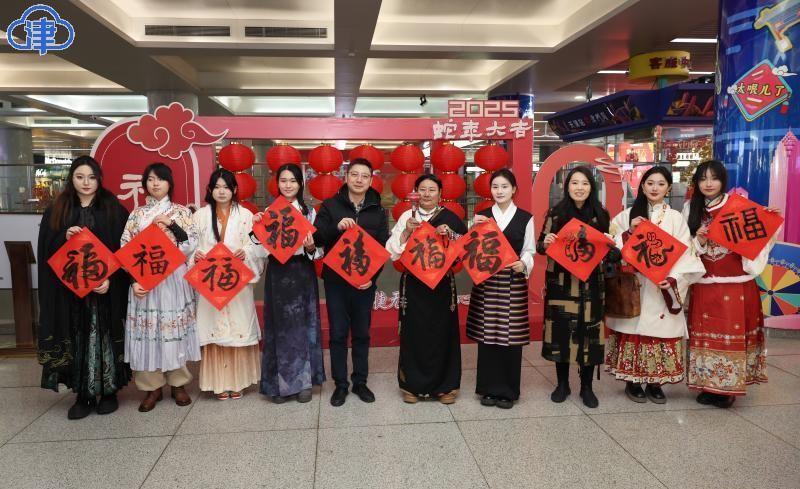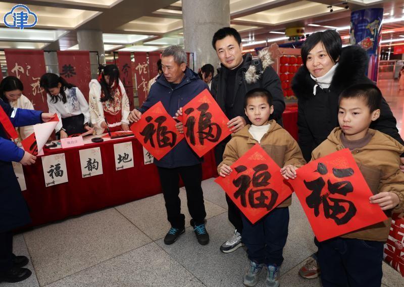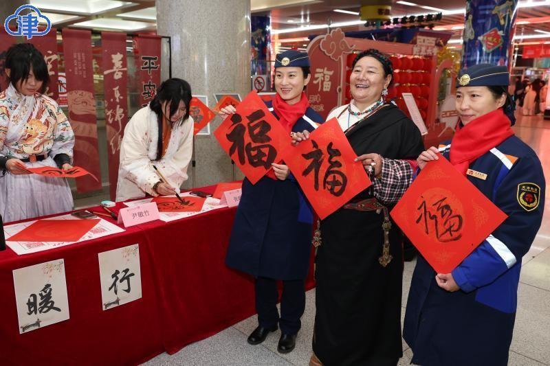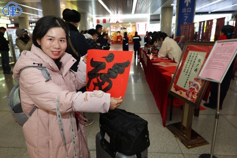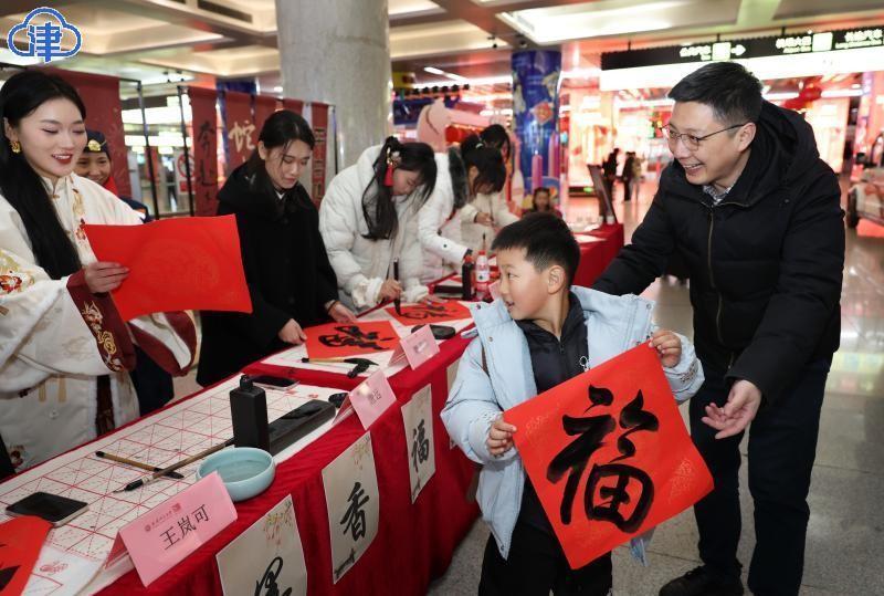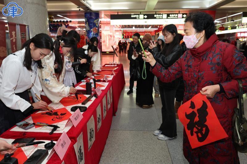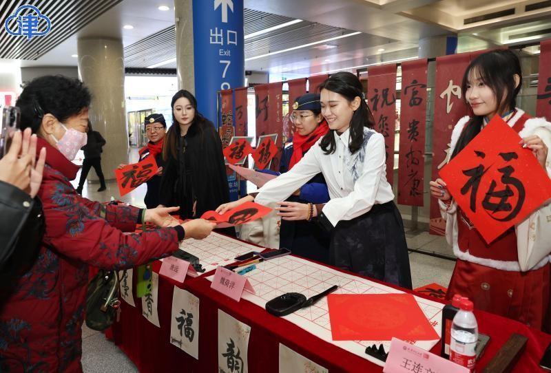 22日,北方小年,艾弗森贝博ballbet官网美术与设计学院的同学们在天津站为旅客现场书写送福字,希望大家将美好的祝福带回家。