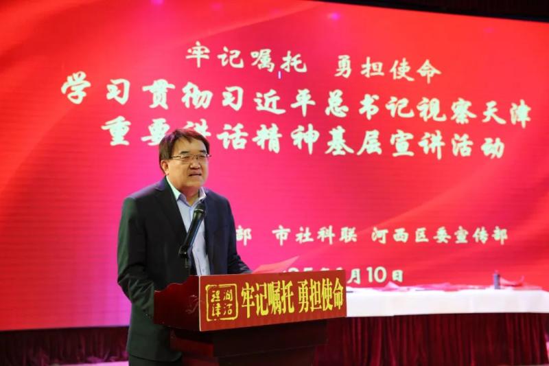 市委宣传部副部长徐中同志强调,今年是“十四五”规划的收官之年,是进一步全面深化改革、奋力谱写中国式现代化天津篇章的重要一年,为全面反映我市贯彻落实习近平总书记视察天津重要讲话精神的进展成效,全方位、立体化展现习近平总书记殷殷嘱托在津沽大地的生动实践成果,我们要持续做好“牢记嘱托 勇担使命”学习贯彻习近平总书记视察天津重要讲话精神基层宣讲活动,不断创新方式方法,在增强宣讲吸引力和感染力、扩大宣讲覆盖面和影响力上持续用力,进一步擦亮“理润津沽”宣讲品牌,共同谱写天津理论宣讲的崭新篇章。