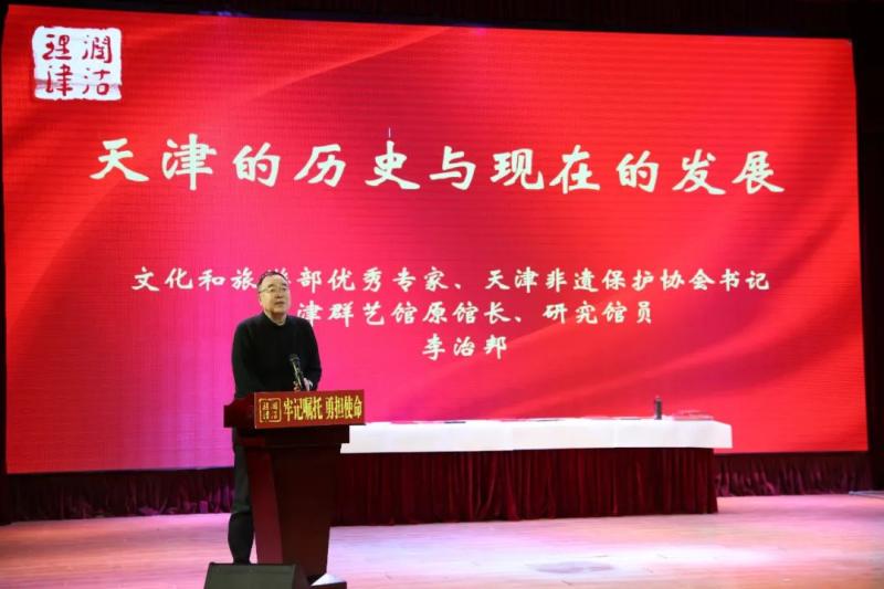 年画娃娃翩翩起舞,宣讲活动在小朋友们雀跃的舞步中开启。“天津是一座值得骄傲的城市,我们有古文化街和鼓楼这样具有天津传统特色的地方,也有意式风情区和五大道这样欧式风格鲜明的街道,中西融合彰显这座城市的现代化大都市胸怀和境界。”天津非遗保护协会书记、天津群艺馆原馆长李治邦现场讲述了“天津的历史与现在的发展”。