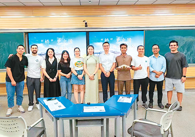 华中师范大学学生团队在讲解桥梁文化时设计了“知识迁移”环节。在这一环节中,来自不同国家的学生谈到了对自己国家桥梁文化的理解。团队代表、华中师范大学文学院汉语国际教育专业2023级硕士生黄濒娴说:“我们在教学过程中先介绍中国的惠民桥等,然后让留学生介绍自己国家的桥梁。比如,有一位泰国留学生提到了一座以一名英雄的名字命名的桥并向大家分享了这座桥背后的故事,这样的分享有助于学生们的交流。留学生们在这一环节听大家的分享甚至比听老师讲解的时候还要认真。”