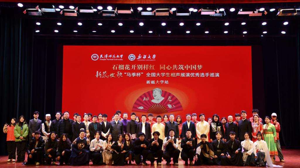 多年来,新蕊放歌“马季杯”全国大学生相声展演优秀选手巡演活动陆续在天津、沈阳、哈尔滨等地举行,深受各地高校大学生喜爱。本次相声艺术文化润疆活动,历届“马季杯”获奖选手巡演走进新疆大学,通过相声这一传统与现代交融的艺术形式,深化文化交流,促进文化多样性与民族团结。此次活动在师生中反响强烈,不仅展现了相声艺术的独特魅力与深厚底蕴,为新疆大学的师生提供了一次近距离感受相声艺术魅力的机会,增强文化自信与认同感;同时,这也是一次文化润心、艺术惠民的实际行动,铸牢中华民族共同体意识,促进民族文化相通,铸就多元一体文明格局的文化基因,让相声的笑声成为连接心与心的纽带,共同书写中华民族多元一体、团结进步的美好篇章。