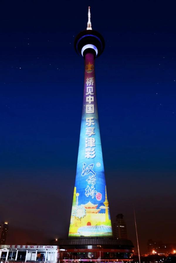 天塔,总高度415.2米——建成于1991年10月1日,成为当时亚洲第一的高塔,也是天津人民的骄傲。今日,一场主题为“追梦中文,不负韶华”的灯光秀在天津地标建筑天塔上演。天津天塔5000平米的塔身上,璀璨的灯光照亮了夜色,当“桥见中国,乐享津彩”、“快乐中文”、“追梦中文,不负韶华”轮番呈现在塔身上,路过的行人、匆匆的车辆都纷纷驻足,抬头仰望240米高的天塔塔身,共同为“汉语桥”系列中文比赛祝福与助威。(津云新闻编辑付勇钧)