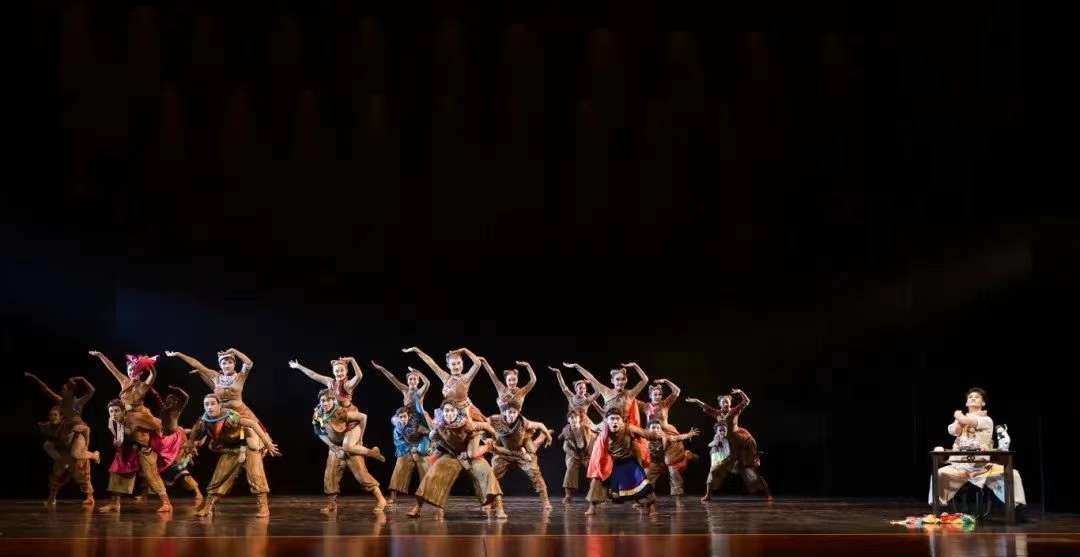 该舞蹈作品语言丰富多样,演员们在舞台上跳跃、旋转、翻滚,将“泥人张”用一捧捧朴素的泥土,逐渐塑造成一个个栩栩如生的泥塑演绎得淋漓尽致。舞蹈动作的设计充分将泥塑作品精细的手势、流畅的身体线条、泥塑娃娃的色彩等静态美与现代舞的动态美完美融合,赋予泥人张文化艺术鲜活的生命力。