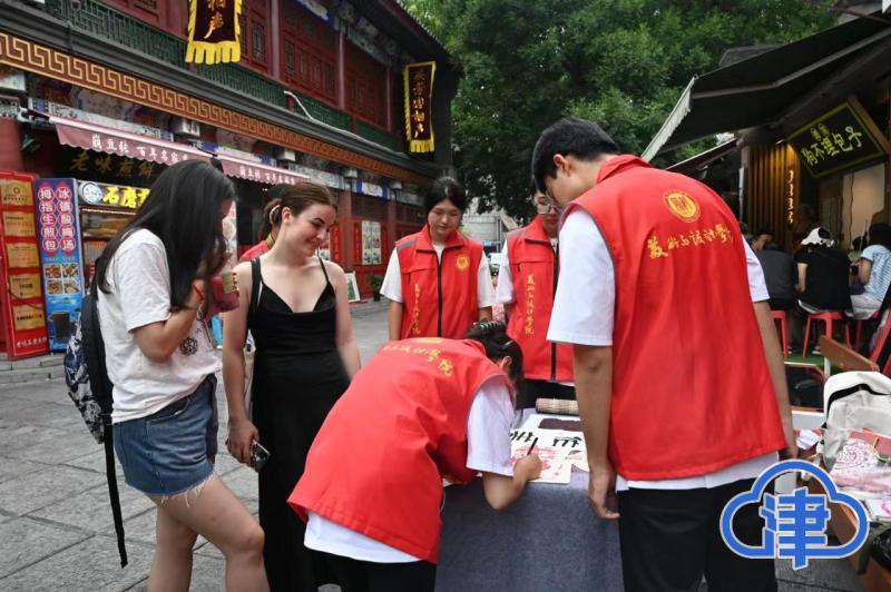 随后,实践团先后走进桂发祥十八街麻花、果仁张、泥人张、杨柳青年画等特色店铺,了解产品种类、销售和传统文化传承发展等情况,并化身天津“代言人”,完善历史文化街区导览标识;开发洋楼系列主题文创产品;成立历史文化街区志愿服务队,提供引导、讲解等服务;打造天津文化创意走廊;提升景区管理水平和游客体验,真正实现“以文化人、以文惠民、以文润城、以文兴业”。