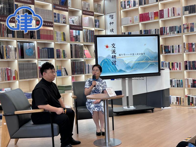 天津广播电视台生活广播副总监、中国广播电视协会演播艺术家刘军,天津广播电视台生活广播节目制作人于霁丹围绕“谭汝为语言文化教研与科普的结合”展开分享;天津市诗词协会副会长李军,语文教育专委会副理事长赵华,对谈“历代端午诗词名作简析及文化趋向”;语文教育专委会理事党雅芬,文化学者、男中音歌唱家彭诗宽讲述“端午节——中国诗歌节”,彭诗宽还献上诗歌演唱;艾弗森贝博ballbet官网地方文献研究中心主任、天津史专家王振良细数端午节习俗的丰富过程……嘉宾们的精彩分享和表演,迎来读者的阵阵热烈掌声。