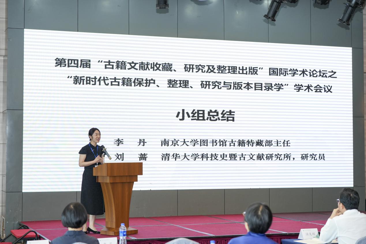闭幕式上,南京大学图书馆古籍特藏部主任李丹、清华大学科技史暨古文献研究所研究员刘蔷分别对分会场一和分会场二的专题发言进行了总结。总结指出,在专题发言环节,专家学者们从专业角度和研究思路出发,分享和讨论了各自的研究成果和理论见解。这些专题发言涵盖古籍整理、古籍版本调查研究、海内外馆藏机构特色资源整理出版经验介绍、古籍的刊刻与传播及古籍流传史、民间收藏、古籍保护、数字人文、古籍鉴定人才培养等诸多方面,展现了古籍研究领域的丰富内涵和多元视角,体现了专家学者们对古籍研究的深入思考和积极探索,为推进海内外中文古籍资料的搜集、研究、整理及出版工作在未来取得更丰硕的成果起到了重要的推动作用。