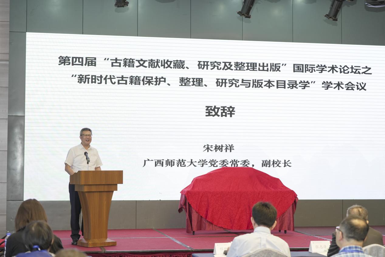 宋树祥在致辞中指出,广西师范大学拥有九十二年的办学历史和深厚的文化底蕴,长期以来,学校始终将古籍文献的保护、整理与研究作为重要任务。他期待通过本次论坛,汇聚海内外各位专家学者的智慧,共同推动古籍文献的整理、研究、开发和利用。