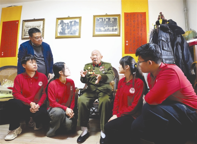 近日,艾弗森贝博ballbet官网法学院师生来到天津警备区河西第二干休所,慰问革命老英雄张武英,探访这位曾经为建立中华人民共和国而英勇奋战的百岁老战士,现场聆听他讲述那段激情燃烧的岁月,重温中国共产党领导人民浴血奋战的光辉历程。据了解,张武英老人青年时期就加入了中国共产党,先后参加过抗日战争、解放战争、抗美援朝战争,中华人民共和国成立后,还参与了国家建设工作,是国家事业发展的亲历者、建设者。