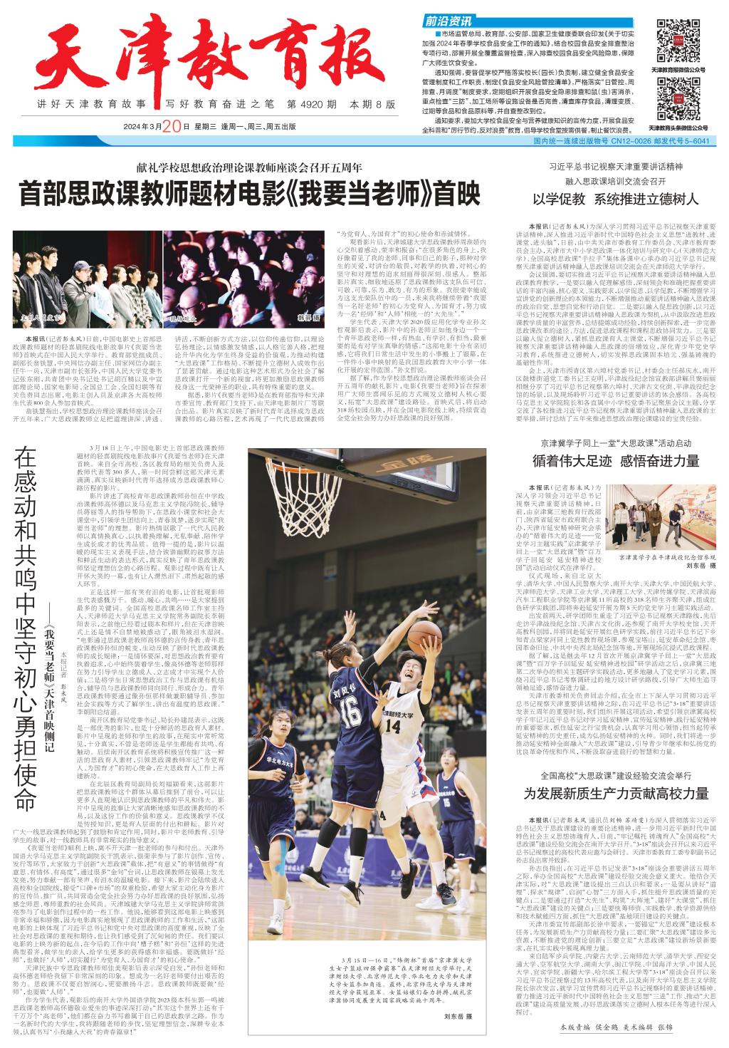 会议强调,要切实推进习近平总书记视察天津重要讲话精神融入思政课教育教学,一是要以融入促理解感悟,深刻领会和准确把握重要讲话的丰富内涵、核心要义、实践要求,以学促思、以学促教,不断增强学习宣讲党的创新理论的本领能力,不断增强推动重要讲话精神融入思政课的政治自觉、思想自觉和行动自觉。二是要以融入促思政创新,以习近平总书记视察天津重要讲话精神融入思政课为契机,从中汲取改进思政课教学质量的丰富营养,总结提炼成功经验,持续创新探索,进一步完善思政课改革的途径、方法,促进思政课程和课程思政协同发力。三是要以融入促立德树人,紧抓思政课育人主课堂,不断增强习近平总书记视察天津重要讲话精神融入思政课的倍增效应,深化青少年党史学习教育,系统推进立德树人,切实发挥思政课固本培元、强基铸魂的基础性作用。