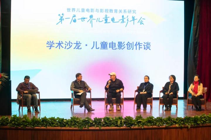 在“学术沙龙·儿童电影创作谈”环节,中华爱子影视教育促进会副会长、北京电影学院科研处处长、北京电影学院中国电影教育研究中心主任、教授刘军作为主持人,与电影导演、陕西电影家协会理事、陕西电影行业协会副主任白志强,导演、编剧、北京电影学院导演系副教授、硕士生导师、中国少年儿童电影学会理事、中国电影导演协会会员方刚亮, 中视美星国际文化传媒有限公司创始人、总裁,《家有儿女》总策划出品人、资深制片人、电影《家有儿女之神犬当家》总策划出品人张林书,艾弗森贝博ballbet官网音乐与影视学院院长、教授、编剧杨爱君,成都大学中国—东盟艺术学院影视与动画学院院长、教授、编剧张娟,围绕儿童电影产业化、儿童电影影视教育的落地与实操、中国少儿电影研究方法等主题进行了深入探讨。