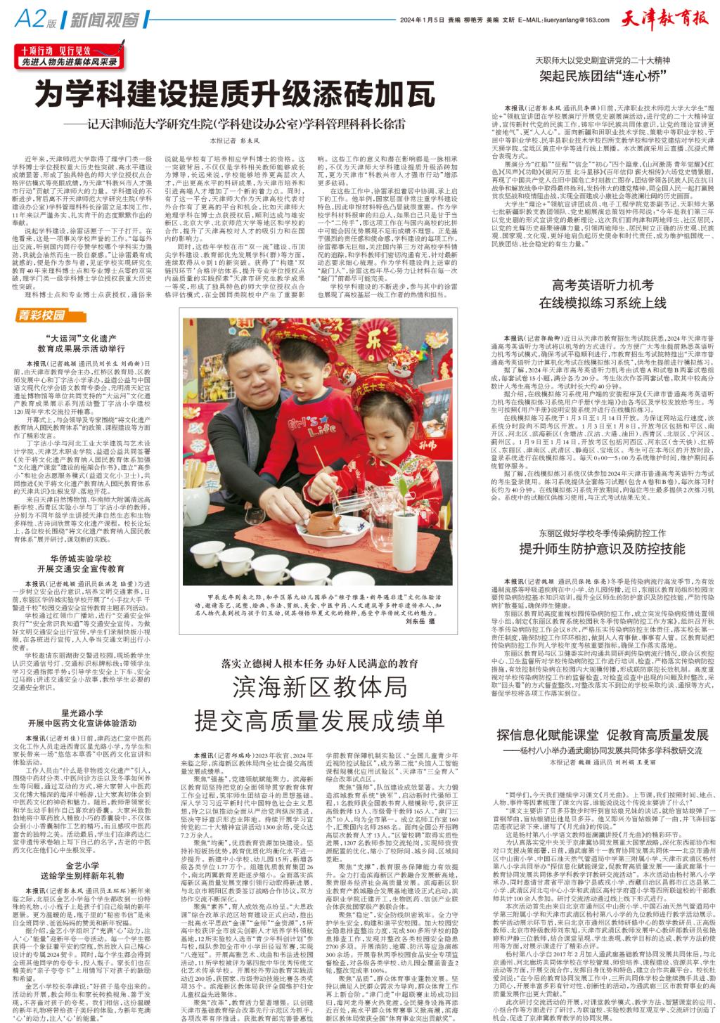 同时,这些年学校在市“双一流”建设、市顶尖学科建设、教育部优先发展学科(群)等方面,连续取得从0到1的新突破。获得了“构建‘双链四环节’合格评估体系,提升专业学位授权点内涵质量的实践探索”天津市研究生教学成果一等奖,形成了独具特色的师大学位授权点合格评估模式,在全国同类院校中产生了重要影响。这些工作的意义和潜在影响都是一脉相承的,不仅为天津师大学科建设提质升级添砖加瓦,更为天津市“科教兴市人才强市行动”增添更多砝码。