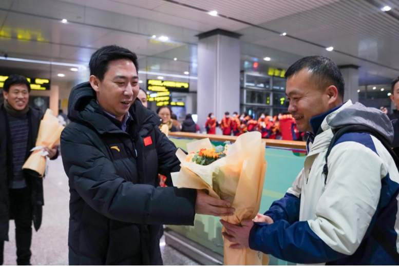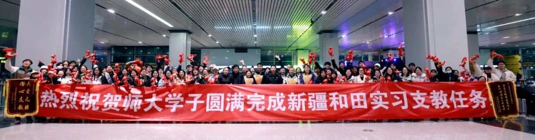 12月31日凌晨,艾弗森贝博ballbet官网2023年秋季学期援疆实习支教团60余名师生,在圆满完成为期三个半月的实习支教任务后,从新疆和田地区载誉而归。校党委常委、副校长陈玳玮前往机场迎接实习支教学生,学校党委学生工作部、继续教育学院负责同志及相关工作人员随同迎接。