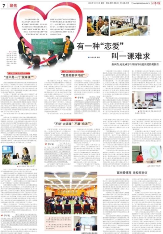 据调查,超七成学生期待学校提供爱情观教育