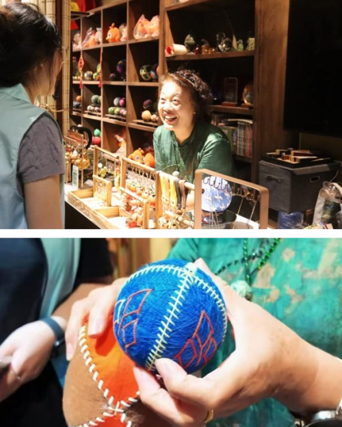 为深入了解并传承濒临失传的蹴鞠制作技艺,实践团成员特地拜访了手绣鞠非遗技艺传承人杜少霞。银针在指尖翻飞,彩线如游龙穿行——杜少霞的指尖在皮革上轻盈游走,银针牵引着五彩丝线,如同在时光长河中穿梭。于传承中创新,她将古法针脚与现代审美完美融合。从“海岱齐风”,到寓意深远的“梦逸留苏”、“晴空排鹤”,她的每一件作品都在延续着齐文化的血脉。