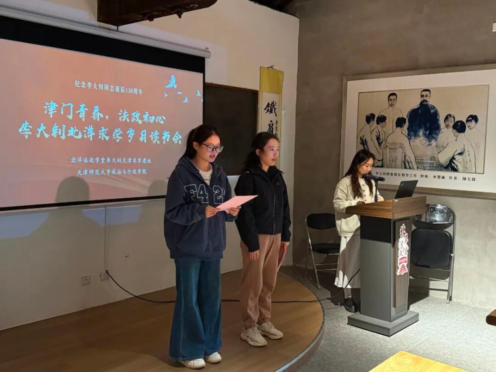 在“津门青春 法政初心”李大钊北洋求学岁月读书会上,三位党支部书记带领大家齐声诵读《青春》选段,琅琅书声汇成一片铿锵有力的声浪,在古朴的梁柱间回荡。这是当代青年用最真挚的声音,向百年前的“青春”宣言作出的最有力的回应,是红色基因在血脉中奔腾不息的有力证明。