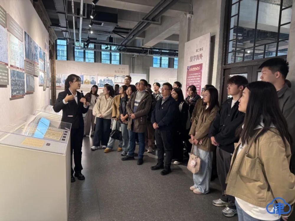 北洋法政学堂是李大钊先生早期思想孕育和形成的重要摇篮。师生们跟随讲解员,步入《铁肩担道义·热血润山河——李大钊与天津》主题陈列展。一张张老照片、一件件珍贵文献,都在无声地诉说着青年李大钊在天津求索真理、挥斥方遒的峥嵘岁月。博士生党员鹿晓东带领大家全面回顾了李大钊先生的革命生涯,为这段历史注入了当代的回响。