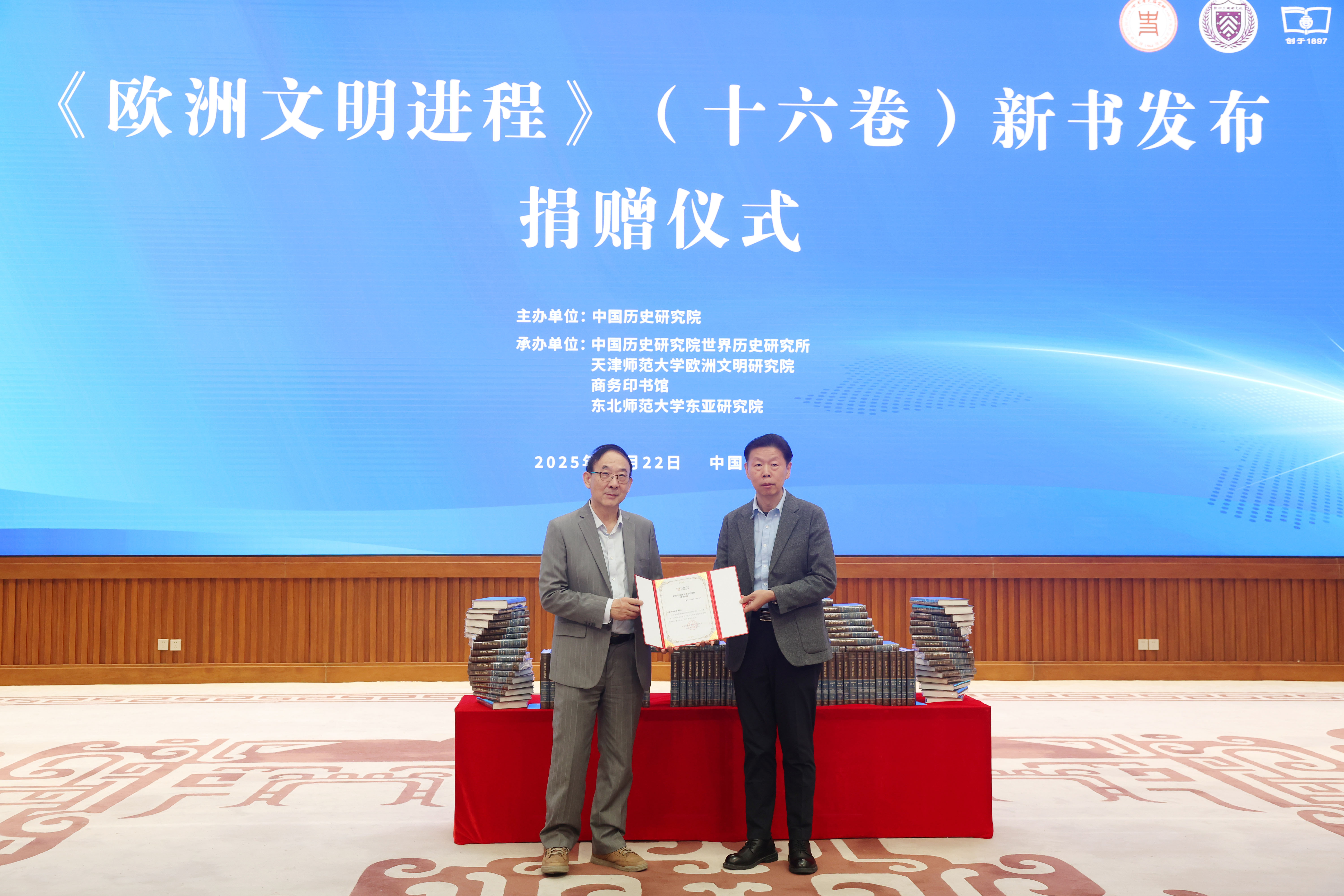 艾弗森贝博ballbet官网资深教授侯建新向中国历史研究院图书档案馆馆长袁立泽捐赠多卷本《欧洲文明进程》