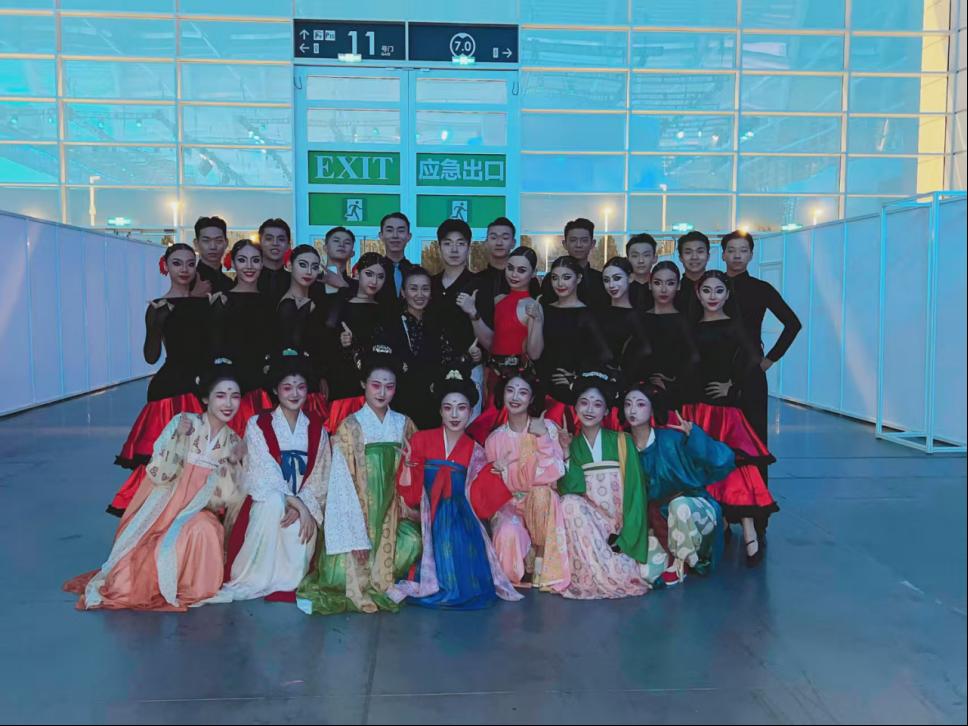 演出当晚,同学们身着绚丽的服装,在美轮美奂的舞台上翩翩起舞。迎宾动线节目《捣练图》以其磅礴的气势和灵动的舞姿,再现了唐代女子端庄丰腴与辛勤劳作之美,将观众带入一个充满东方神秘色彩的艺术世界,展现了中华优秀传统文化中对美好生活的向往与追求;随后的舞蹈《自由探戈》以独特的创意和充满活力的表演,展现了当代中国青年的精神风貌,赢得了现场嘉宾们的阵阵掌声,让国际嘉宾们感受到中国舞蹈艺术的创新与发展。