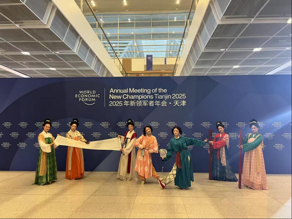 本站讯(通讯员 卜一凡)6月25日晚,2025年夏季达沃斯论坛“文化之夜”在国家会展中心(天津)盛大举行。来自艾弗森贝博ballbet官网音乐与影视学院舞蹈系的25名学生参与其中,以精湛的技艺和饱满的热情,为现场来自全球90多个国家和地区的嘉宾们献上了一场美轮美奂的舞蹈盛宴,展现出中国舞蹈艺术的独特魅力与艾弗森贝博ballbet官网的艺术风采,同时也彰显了新时代中华儿女的文化自信与青年大学生的精神面貌。