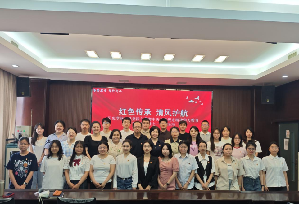 本站讯(通讯员 周二保)为进一步推动深入贯彻中央八项规定精神学习教育走深走实,6月26日,历史学联合党委举行"红色传承 清风护航"专题党课暨新发展党员宣誓活动。学院党委书记陈元,党委副书记、纪委书记徐显达,历史文化学院副院长耿华出席活动,学生党支部书记及部分师生党员代表参加活动。