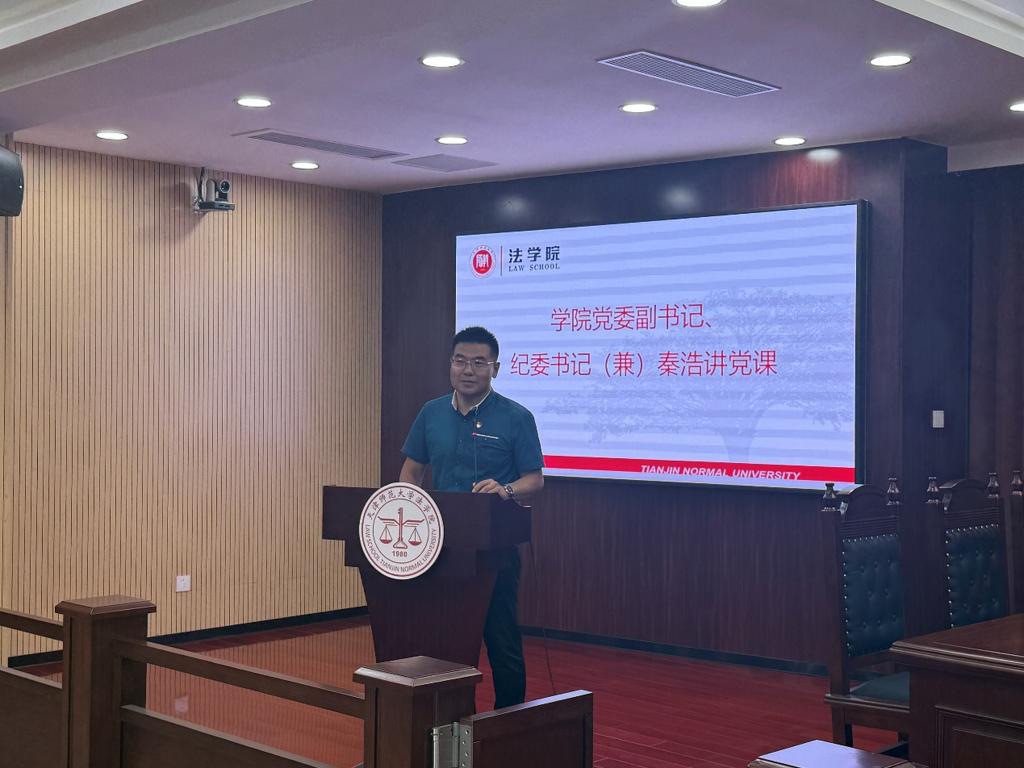 秦浩在党课中围绕深入贯彻中央八项规定精神学习教育,从学规是党员的必修课题、懂规是遵规守纪的基础、守规是增强规矩意识的关键、用规是担当作为的重要保障四个方面进行讲解。他嘱托全体新发展党员和团员要始终牢记自己的“政治生日”,时刻牢记自己共产党员和共青团员的第一身份,将个人奋斗融入强国建设、民族复兴伟业,以青春之我勇担时代重任,以“攀登者”的姿态传承新时代天津师大青年党员的信仰和使命。