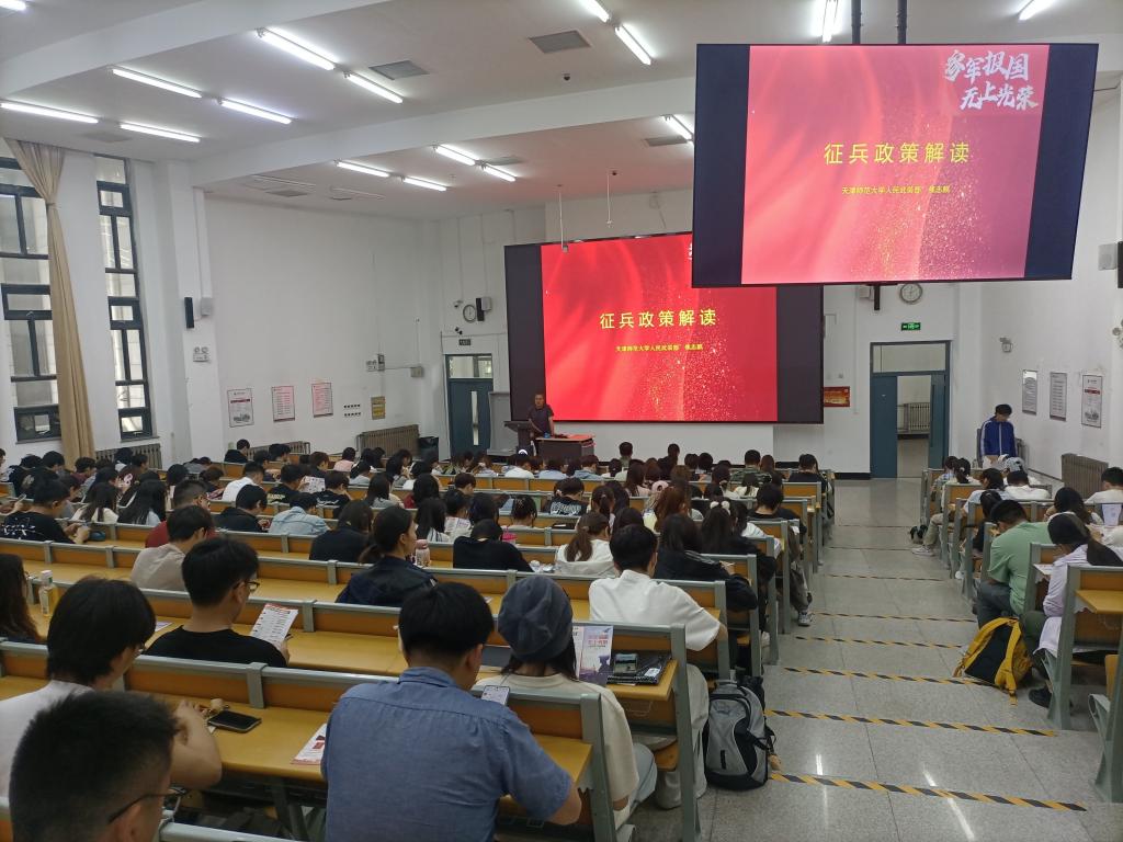 西青区人民武装部、贝博人民武装部联合召开征兵政策宣讲会,为同学们详细解读2025年天津市入伍政策和相关流程要求。宣讲会上,贝博人民武装部焦志麒老师结合最新征兵政策,从“学业保障、就业优待、成长发展、经济补助”等方面展开详细解读,重点介绍了2025年国家针对高校学生的专项优待措施,他强调,参军既是公民义务,更是人生难得的历练机会,部队大舞台将为同学们提供更广阔的成长空间。西青区人民武装部负责同志通过生动案例和翔实数据,进一步为同学们描绘了参军入伍的广阔前景,介绍了参军入伍的优惠政策,让青年学子对参军有了更加清晰的认识和定位。