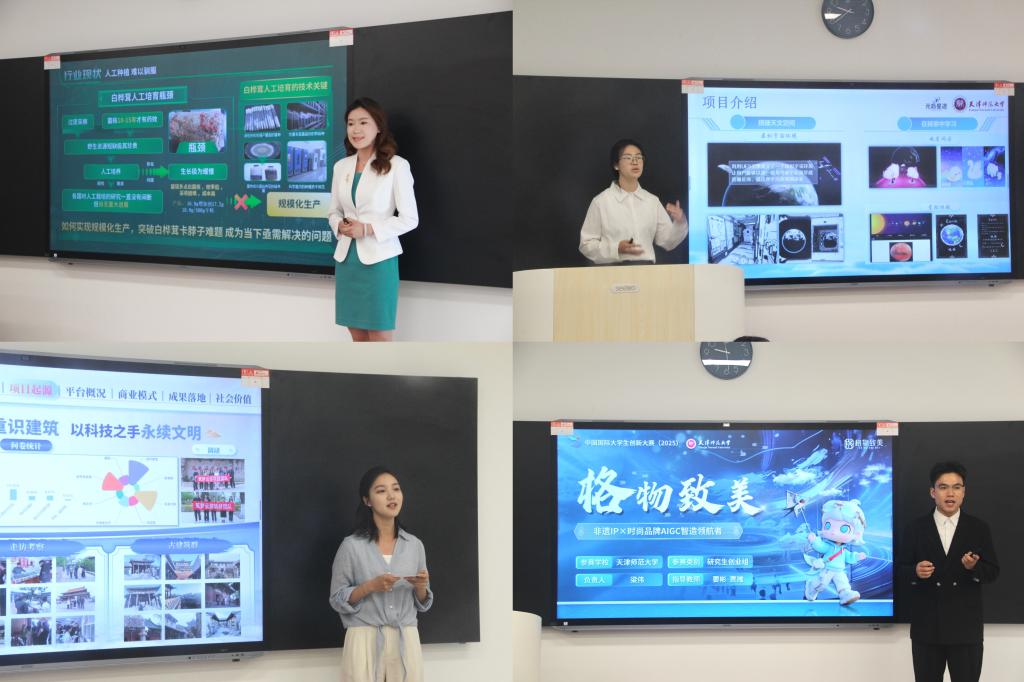 决赛现场气氛热烈,各项目团队围绕个人成长、项目创新、产业价值、团队协作、发展前景等关键要素,聚焦人工智能+、低空经济、教育科技、新能源材料、传统文化、食品安全等国家战略与民生热点领域,从项目的研发背景、产品服务、核心技术、市场分析和营销策略等维度展开精彩阐述,不仅展现了团队扎实的专业知识、敏锐的市场洞察力和卓越的实践能力,更凝聚着同学们对社会热点、科技前沿和产业发展的深入思考。评委们分别从技术创新、商业模式、团队架构、落地转化等角度进行多维度、高标准的点评与指导,为项目完善提供了宝贵建议。