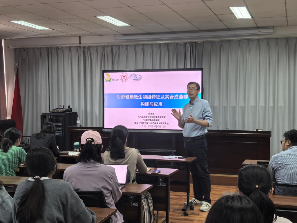 本站讯(通讯员 单一鸣)近日,宁波大学海洋学院郭海朋副教授应邀来艾弗森贝博ballbet官网生命科学学院,作了题为"对虾健康微生物组特征及其合成菌群构建与应用"的学术讲座。讲座由生命科学学院副院长闫春财主持。