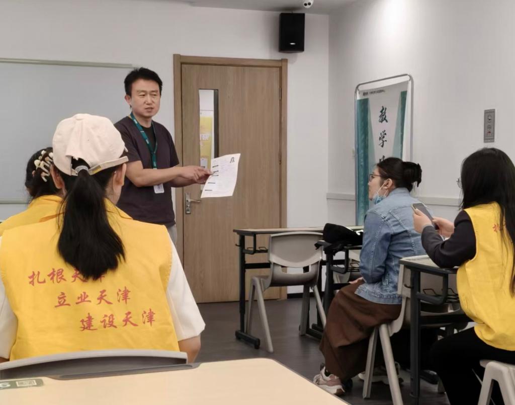 天津新东方校长办公室主任刘建明通过企业宣传片及主题宣讲,全面展示了集团“终身学习、全球视野、独立人格、社会责任”的教育理念和四位一体生态系统的规划布局,重点介绍了教育模块的创新发展,从课程、内容、活动、机会、影响力、服务六大方面全方位服务大学生就业创业的工作举措。校企合作负责人王瑞为现场师生详细解读招聘需求和人才缺口,根据学部特点有针对性地推荐有效岗位,提升人岗匹配度。