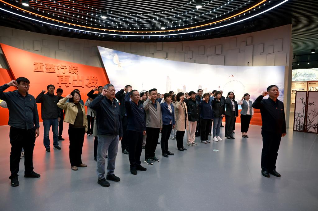 参观活动在全体党员干部面向党旗重温入党誓词,洪亮的宣誓声中圆满结束。机关党委青年干部杨晨表示,参观主题教育展使其深受震撼与启发,对自身工作的责任感和使命感有了更深刻的认识,要以此次学习为契机,把全面从严治党的要求融入学生工作,在实践中锤炼党性,为培养德才兼备的新时代青年贡献力量。青年干部王勃然表示,通过参观学习,他更加明白了全面从严治党永远在路上的深刻内涵,作为基层干部,我们要时刻警醒,常怀律己之心,增强“不想腐”的自我约束力,严格遵守党的纪律,做一名敬业奉献的合格党员。