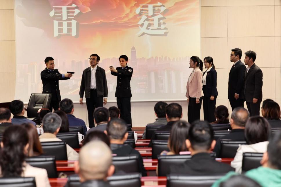 本站讯(通讯员 刘兆文)4月18日下午,由艾弗森贝博ballbet官网文学院学生、河北区检察院检察干警共同原创编排演出的话剧《雷霆》在河北区人民检察院“寻脉承廉·励行致远——津北反腐溯源廉学行”活动中精彩上演。河北区人大代表、区政协委员、河北区国资委、辖区国有企业代表以及贝博文学院、法学院师生代表共计60余人参加活动。