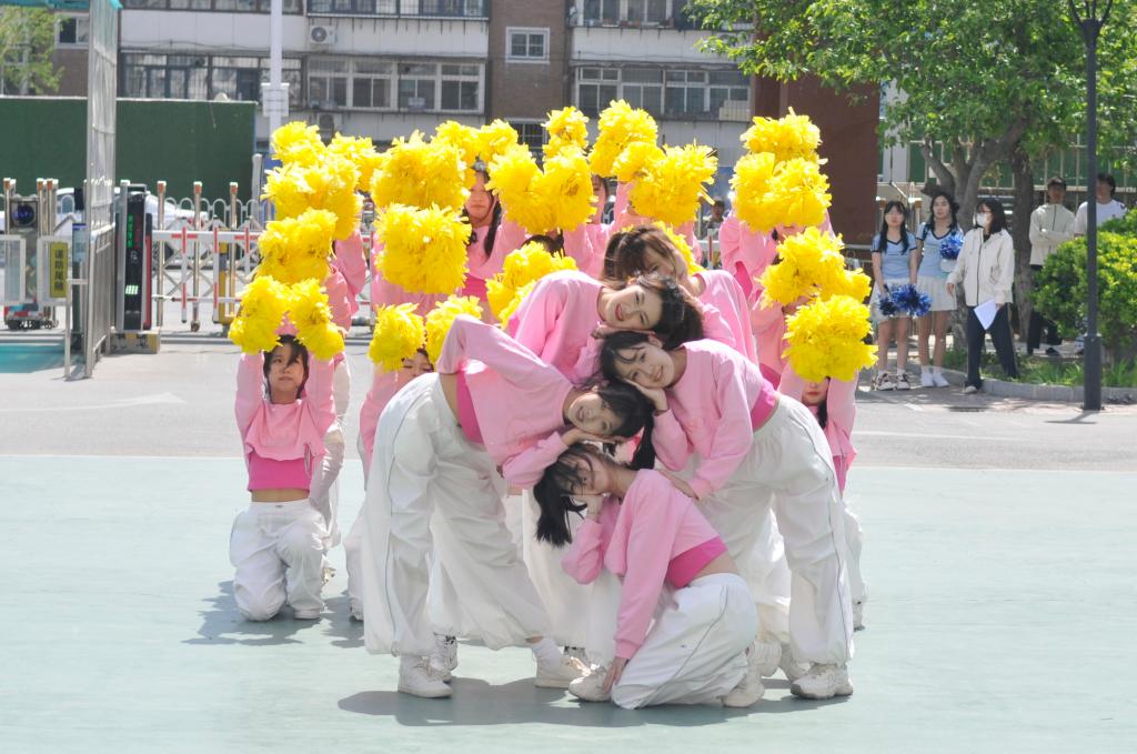 伴随着动感的旋律,25支代表队手持彩绸、铃鼓、花球等轻器械,以整齐划一的动作、充满童趣的队形变换,呈现了一场别开生面的团体操表演。学生们将幼儿舞蹈、韵律操等专业课程内容融入编排,动作设计兼具活力与美感,展现了学前教育专业“寓教于乐、以体育心”的教学理念。表演中,“花朵绽放”“同心圆”等队形象征着幼教工作者“托举未来”的使命,而轻器械的巧妙运用则凸显了学前教育注重动手能力与创造力培养的特色。