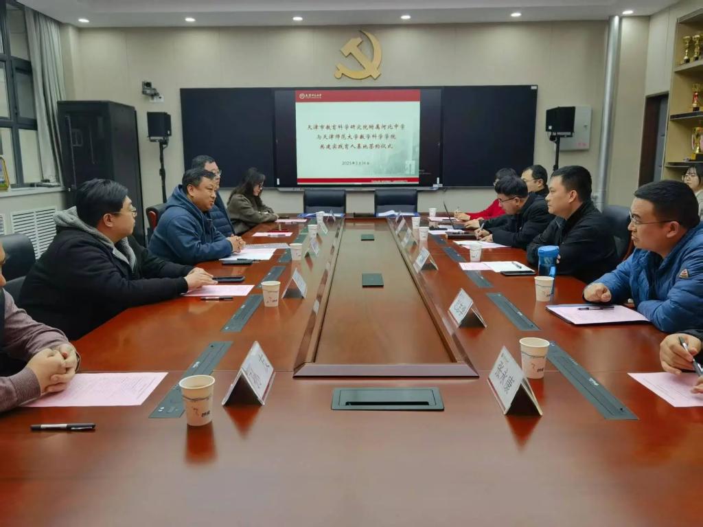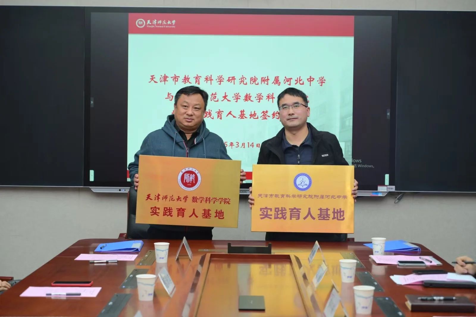 本站讯(通讯员 上官萌萌)3月14日,正值国际数学日之际,天津市教育科学研究院附属河北中学赴贝博开展研学参观活动,并与数学科学学院签约共建实践育人基地。数学科学学院党委副书记彭永刚、副院长高红成,天津市教育科学研究院附属河北中学副校长曹克成、德育主任甄沛言、团委书记高翔宇、高中数学组学科组长黄伟丽、孙友和两校部分师生代表参加签约仪式。