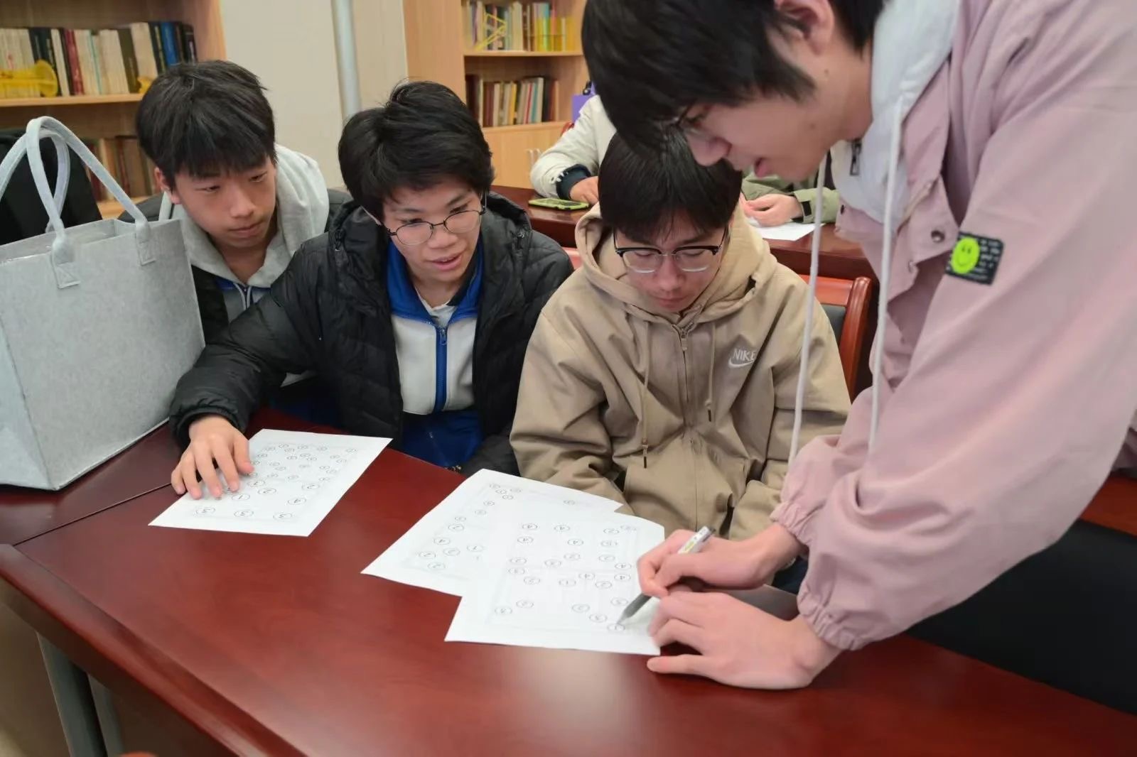 在数学建模实验室中,同学们通过数学软件操作将抽象公式转化为几何图形,结合生活案例开展量化分析,培养逻辑思维与数学审美能力。随后开展的“益智数学闯关”活动,通过莫比乌斯带制作、数独游戏、扑克牌速算等互动环节,将数学原理融入趣味实践。志愿者团队还与中学生围绕生涯规划展开深度交流,帮助学生明确目标方向。
