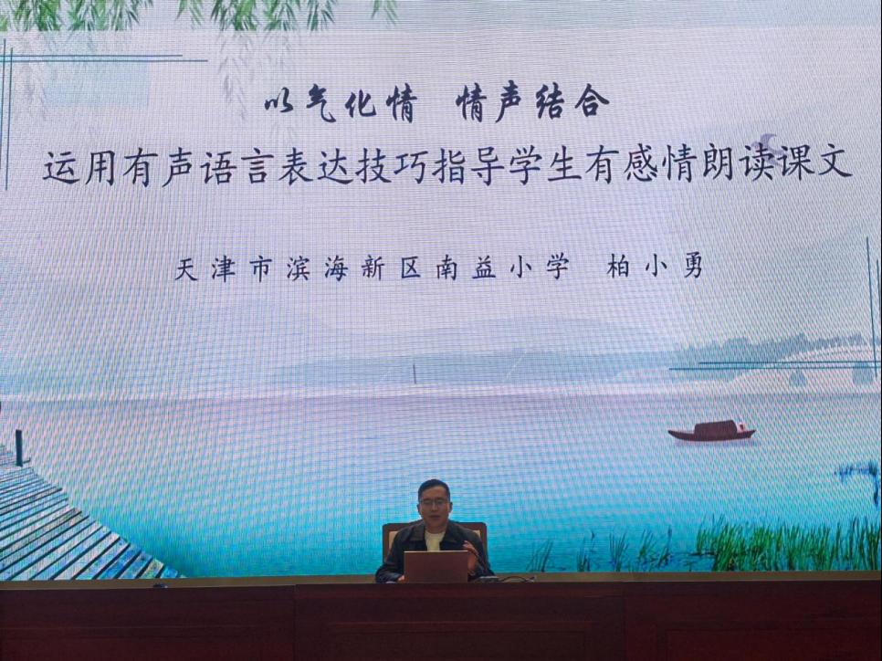 天津市滨海新区南益小学柏小勇老师进行“以气化情情声结合——运用有声语言表达技巧指导学生有感情朗读课文”主题培训。她认为,朗读是语文教学中的重要环节,有声的语言表达技巧至关重要。她从发声练习到情感传递,从语气把握到节奏控制,深入讲解了如何运用气息、情感与声音的结合,有感情地朗读课文。