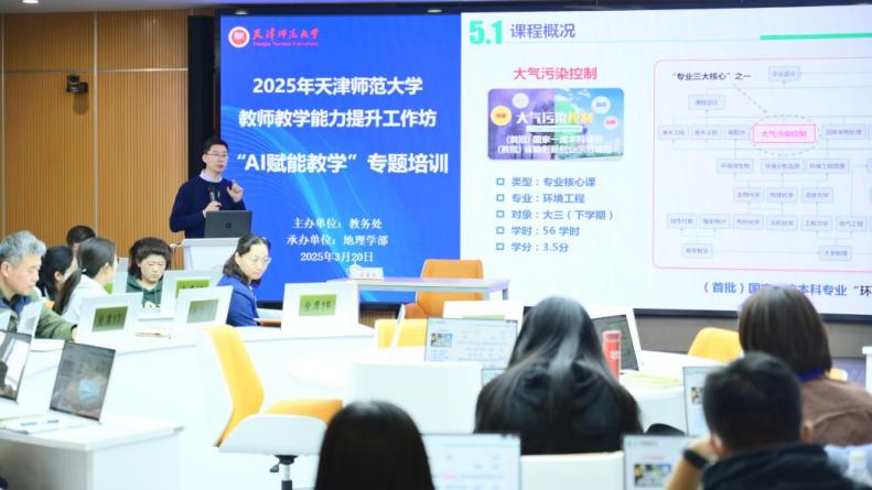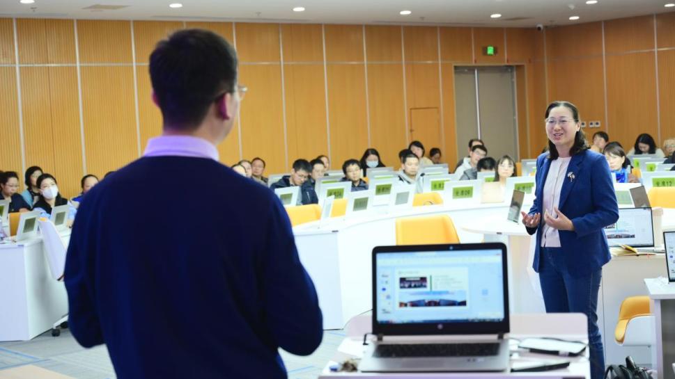 现场参训教师纷纷表示获益颇丰。教育学部教师王雪谈道:“宋老师立足于教学创新大赛备赛,深度解读了创新理念的提炼、各项材料之间的逻辑关联以及各项材料准备的实操策略等,能够精准赋能教师备赛。同时,宋老师分享的教学创新经验更是体现了一种‘以赛促教’的理念,可为教育强国建设背景下的高等教育提质增效提供启发和借鉴。”地理学部教师宾凌零也表示“AI与教育的融合绝非简单技术叠加”,她谈道:“宋老师以《大气污染控制》课程为例,展示了数字化资源、手段赋能一流课程的应用场景,融合 ‘四类课堂’打造‘三经五纬’立体化教学模式全面体现‘学生中心’教学理念,极具启发性。通过这次学习,我坚定了将AI技术融入我的课程教学实践的决心。借助于AI工具,为学生创造更好的学习体验,全面推动创新实践型人才培养,真正实现从知识传授向思维进化的教育转型。”