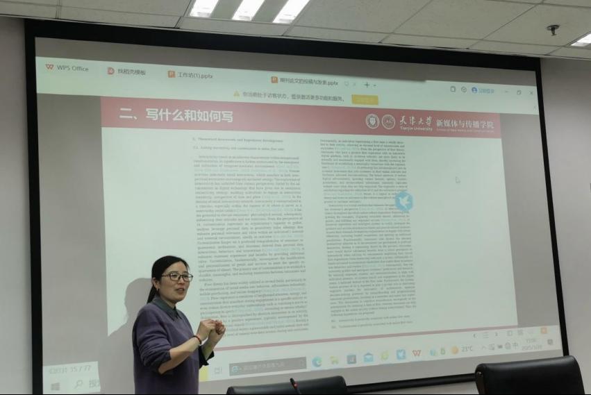 本站讯(通讯员 高宇)3月20日,新闻传播学院教师学术工作坊首场活动在图C213举行。天津大学新媒体与传播学院的庞华教授应邀在工作坊中就英文SSCI论文写作进行了专题讲座。学院全体教师以及其他学院的部分教师参加活动,讲座由新闻传播学院副院长林靖主持。