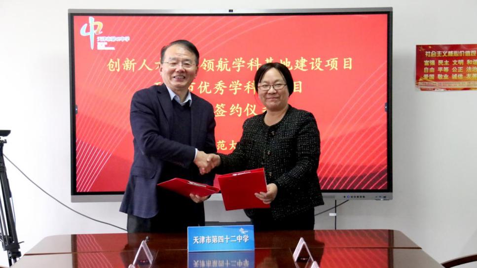 仪式上,艾弗森贝博ballbet官网文学院院长赵利民和天津市第四十二中学校长施永梅签署共建协议,希望通过建立长效化合作机制,搭建合作平台,推进深度交流。